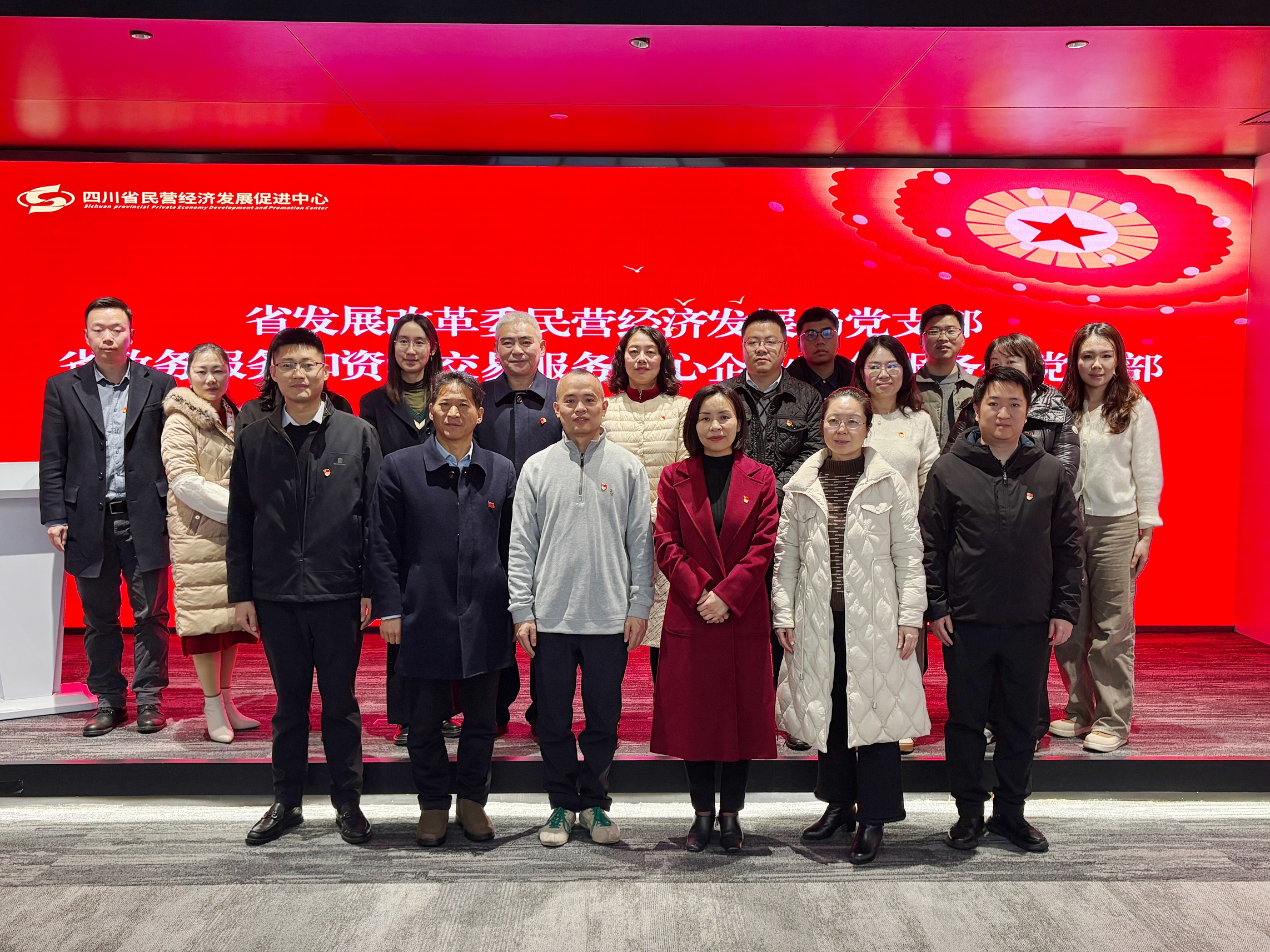 2025年12月31日,为深化党建引领作用,凝聚服务企业合力,省发展改革委民营经济发展局党支部与省政务服务和资源交易服务中心企业政务服务处党支部,在四川省民营经济发展促进中心联合举办“党建引领赋新能,服务企业促发展”主题党日活动。两支部党员干部齐聚一堂,共学理论、共观实景、共话服务、共谋发展。